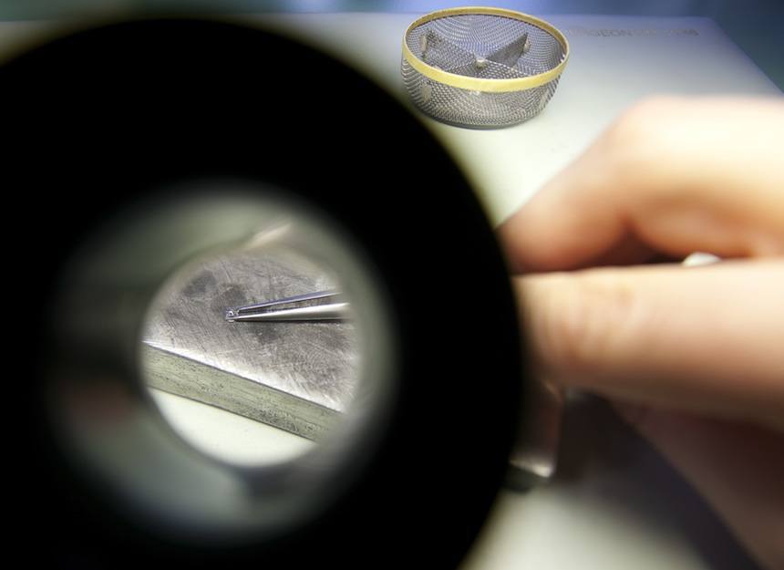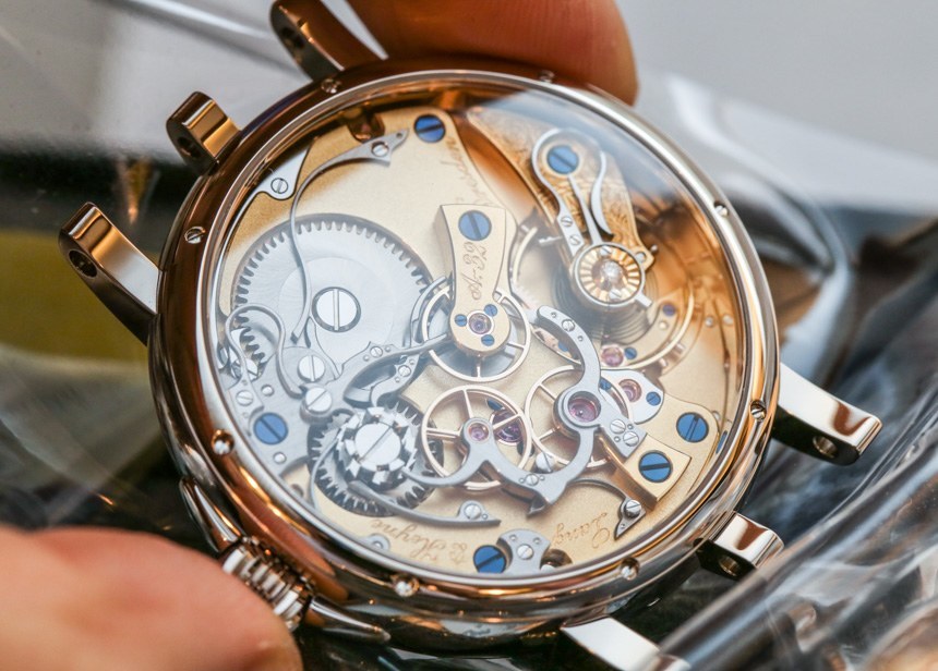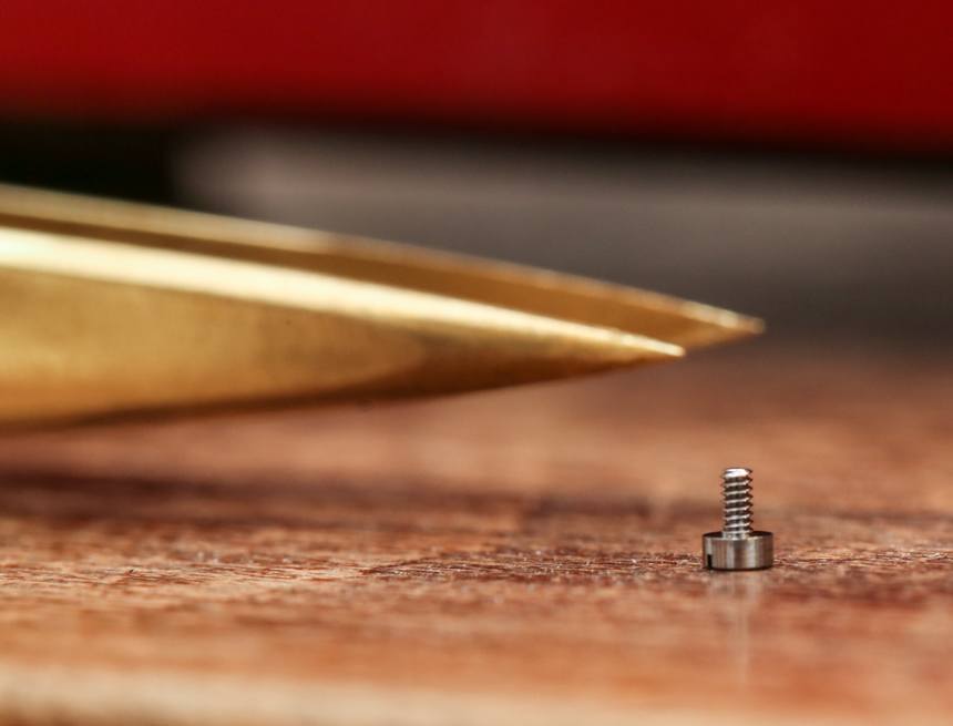 最終看到“完整螺釘”的精確形狀和表面處理需要多長時間?大約 40 分鐘,Marco Lang 以非常實事求是的方式說道。這不是生產或質量控制,而只是拋光。最終結果看起來棒極了,不熟悉高級手表機芯精加工的真正價值的人可以輕松地跳過螺絲等小東西,假設一些花哨的高科技機器像工廠小部件一樣彈出它們。事實是,當你購買一塊嚴肅的手工完成的手表(尤其是德國人的手表)時,即使是螺絲也會像過度保護的父母一樣受到關注。話又說回來,如果您為傳統鐘表支付了奢侈的價格,您希望每個處理它的人都表現得像一個過度保護的父母。