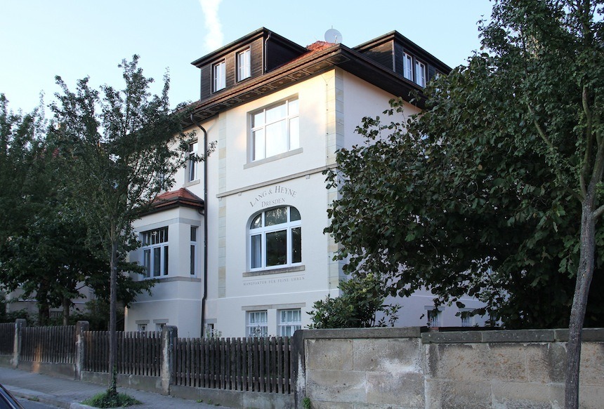 當我稱他為“嚴肅的手表書呆子”時,Marco Lang 笑了。走過Lang & Heyne舒適的制造空間,在他用母語德語說話的間隙,我聽到他用英語“watch nerd”說話,他自豪地向他的各種制表師重復我的短語,這些制表師共同組成了非常特別的德累斯頓制造商傳統鐘表。Marco Lang 指著他掛在廚房墻上的制表師證書,這些證書構成了多代官方文件的馬賽克,證明他來自一長串志同道合的微型機械頭腦。他最喜歡的是 1920 年代初期,當時他的一位女性親戚不僅是郎氏第一位女性制表師,也是該地區第一位女性制表師。