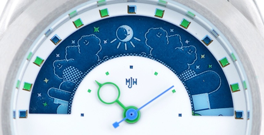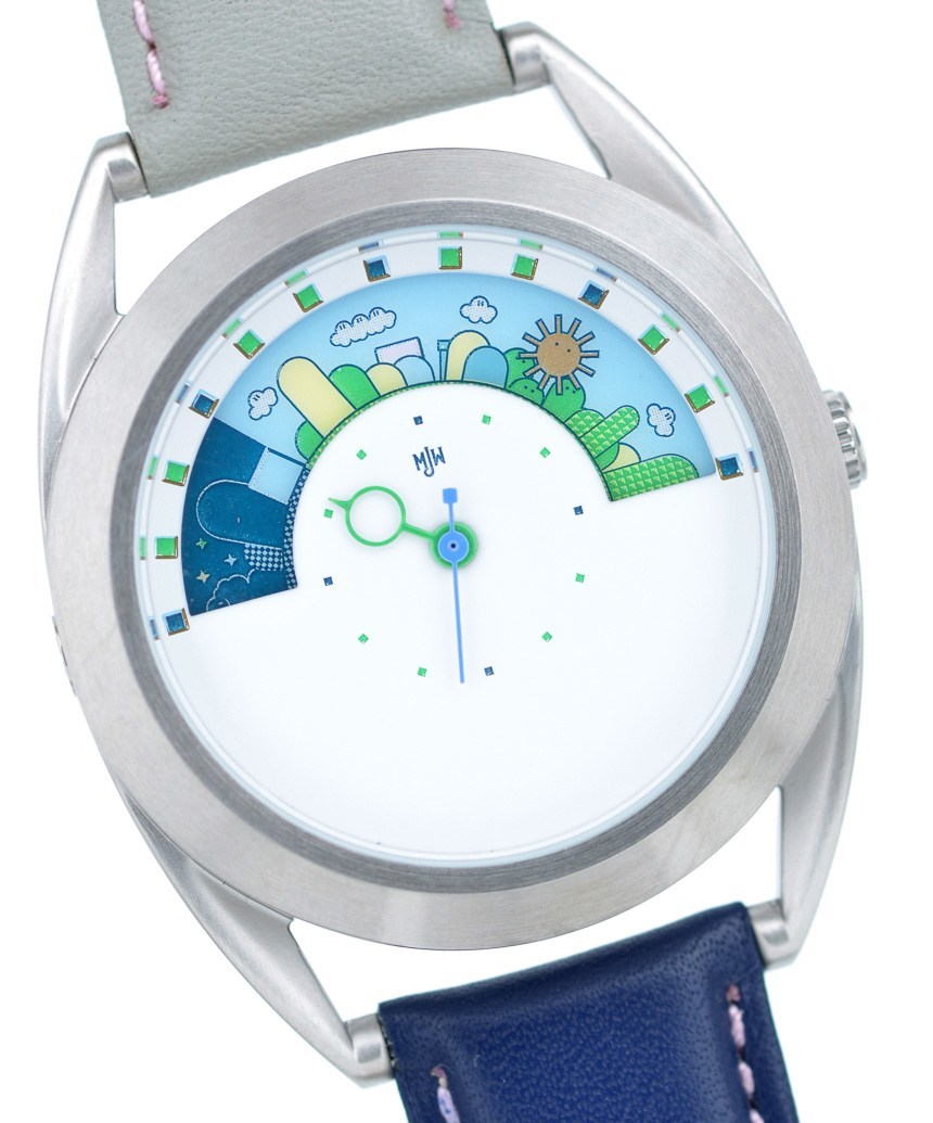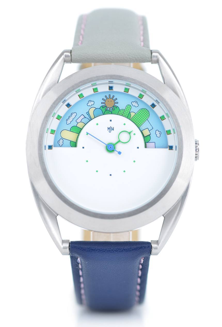 Mr. Jones Watches Sun and Moon Miyamoto 本質上是一款手表,帶有一個用于分秒的小表盤,以及一個出現在窗口中的圓盤,每 24 小時旋轉一圈。這張光盤就是您讀取小時數的方式。Mr. Jones Watches 制作了多款主題各異的 Sun 和 Moon 腕表,最新推出的是帶有卡通超級馬里奧兄弟世界的 Miyamoto,而且其中很多都是限量版。