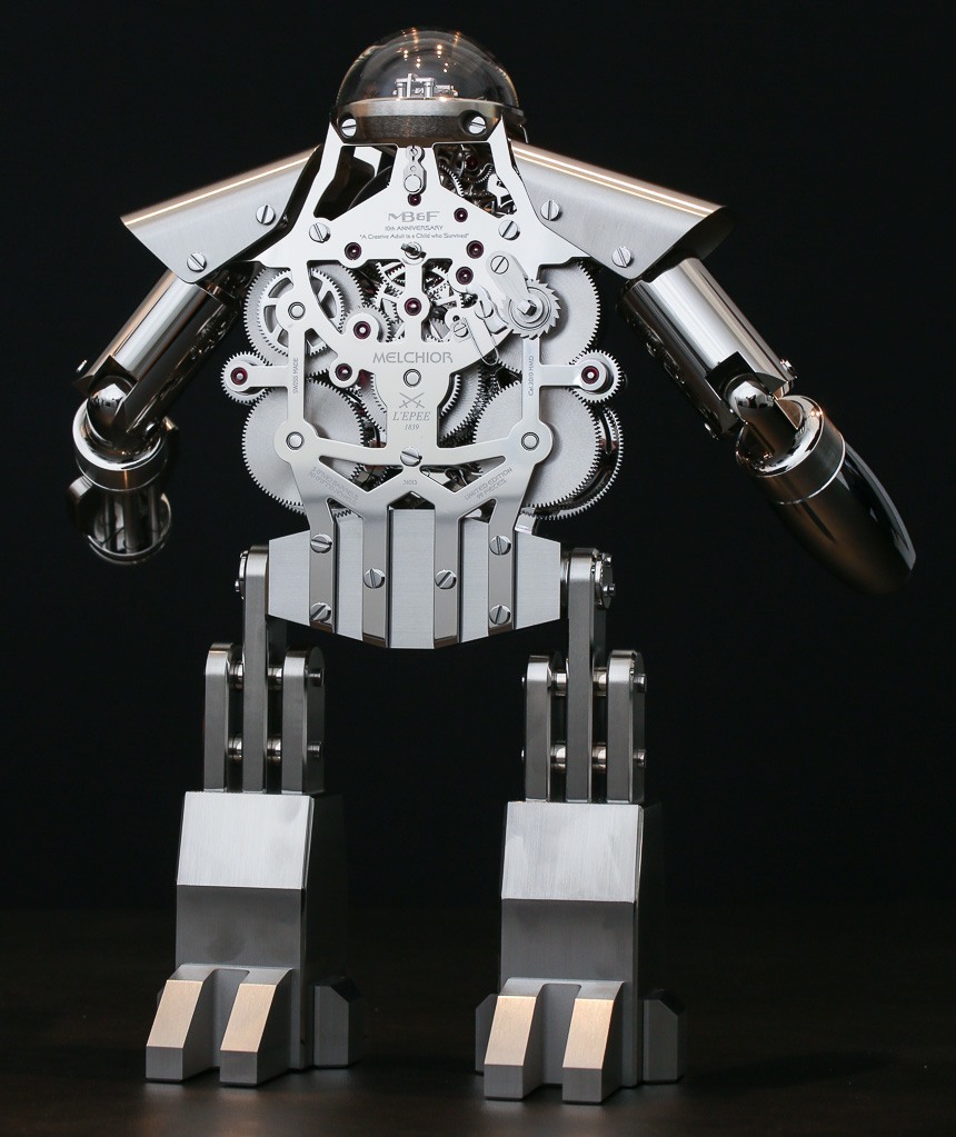 事情是這樣的:如果你有額外的 35,000 瑞士法郎(或等值貨幣),如果你對 aBlogtoWatch 的機械鐘表主題甚至有點興趣,你很可能會想要一個MB&F Melchior 機器人時鐘。不過,這是一個很大的“如果”,因為大約 36,000 美元(在撰寫本文時)并不是小錢。然而,至少有 99 人會非常愿意為在家中或辦公室中安裝這個“機器人時鐘”付出代價。那么,讓我們仔細看看 Swiss MB&F 和 Swiss L’Epée 合作推出的最新鐘表作品。
