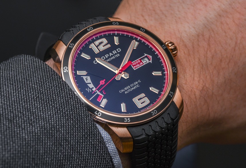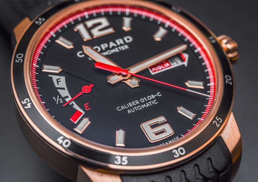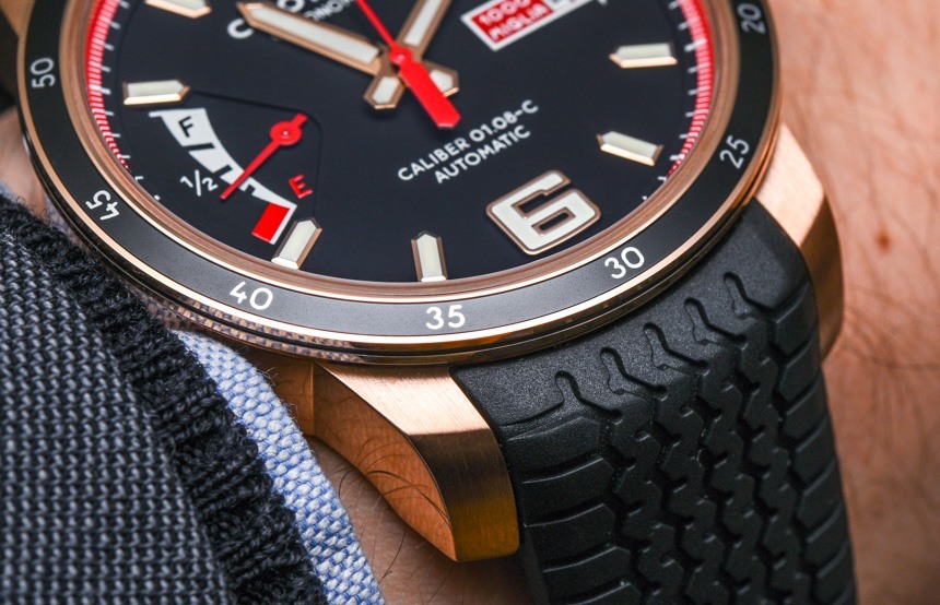 我過去一直很清楚我對大多數蕭邦賽車風格手表的欣賞。我喜歡大膽的外觀、清晰的表盤、顏色的使用和清晰的細節。在這里,您可以看到 2015 年蕭邦 Mille Miglia GTS 系列的設計主題略有更新,其中包括 12 點鐘和 6 點鐘時標的更新數字,以及其他調整。我們還看到了帶有分鐘指示器的薄邊框設計,提供了更復古的外觀。雖然表圈設計不錯,但蕭邦繼續使用鋁作為嵌件——許多其他品牌在這個價位上已經轉向更耐用的材料,比如陶瓷。