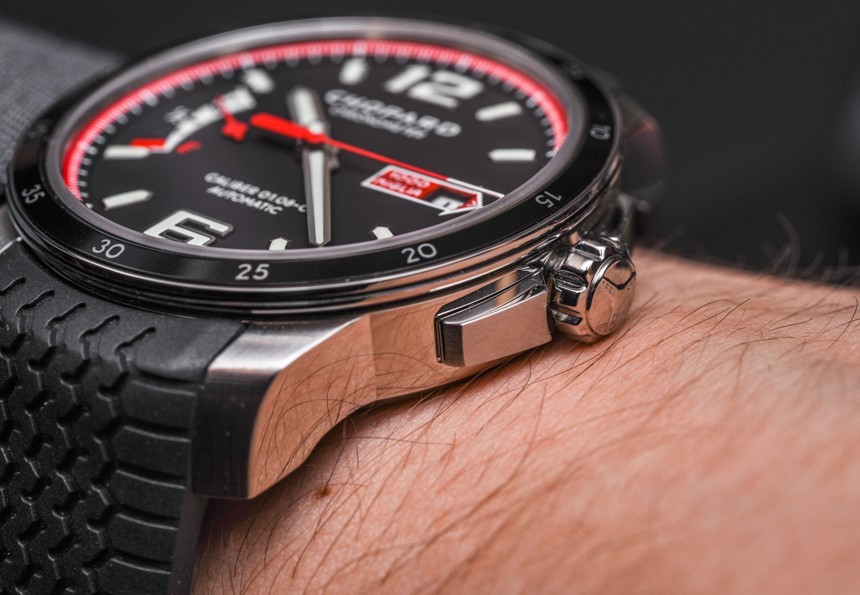 我知道有些人可能不完全喜歡這款手表的設計,但在我看來,蕭邦再次將有趣的賽車主題與精致的風格結合在一起,可以日常佩戴。Chopard Mille Miglia GTS Power Control 和 Automatic 的表殼寬 43 毫米,而計時碼表的表殼寬 44 毫米。我們終于也有了 100 米的防水性能。橡膠表帶看起來有點新,并且本著蕭邦 Mille Miglia 系列的精神,具有 1960 年代鄧祿普輪胎的質感。