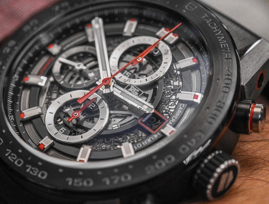 45 毫米寬的 TAG Heuer Carrera Calibre Heuer 01 手表采用黑色、鋼和紅色表殼,在圖片上看起來不像在手腕上那么漂亮。大膽的 Big Bang 風(fēng)格鏤空表盤和指針看起來很酷,整體設(shè)計(jì)有趣而令人興奮,就像泰格豪雅已經(jīng)有一段時(shí)間了。2015 年左右的機(jī)械表的魔力在于機(jī)械機(jī)芯,聰明的公司知道如何向愛好者展示該機(jī)芯。
