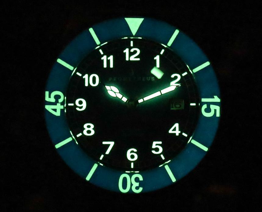 從設計的角度來看,Sailfish 的表盤是一種介于船上甲板時鐘和潛水表之間的混合物。這種組合很有趣,而且易讀性很強,但它缺少了有時從工具表中獲得的性感。話雖如此,表盤并沒有真正打破規(guī)則,因為它的指針大小合適,發(fā)光量也很大。正如您在上面的發(fā)光照片中看到的那樣,Prometheus Sailfish 表盤令人印象深刻。廣告留言廣告信息結束