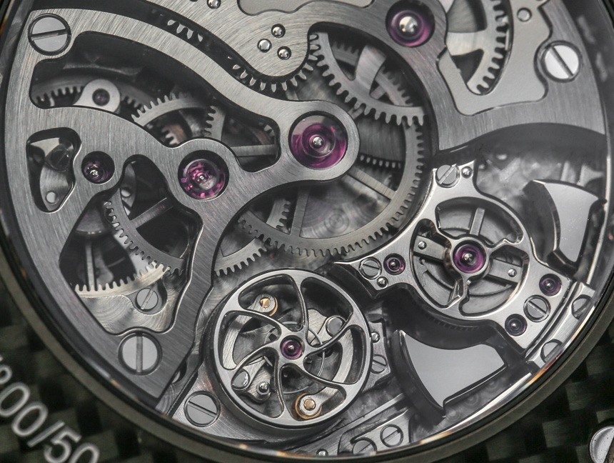 內部制造的 HUB 8001 機芯是手動上弦的,具有 5 天的動力儲存,以 3Hz 運行(我相信)。Hublot 實際上聲稱它有一個“雙重大教堂鐘聲”,可能是因為它有兩個音簧。該機芯由 319 個零件進一步生產——對于這樣的機芯來說效率相對較高。