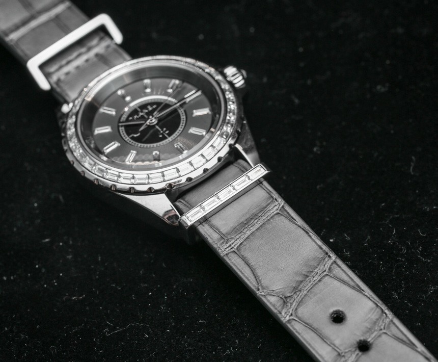 雖然也有 NATO 皮革表帶可供選擇,但 Chanel 直接為他們的 Chanel J12 G10 手表選擇了鱷魚皮。“硬件”(金屬部件)為 18k 白金或精鋼,具體取決于版本。此外,五金鑲嵌鉆石。當(dāng)我第一次在 Baselworld 2014 看到它時(shí),我傻笑著想,“好吧,現(xiàn)在我們有珠寶北約表帶了。” 至少在今年,所有 Chanel J12 G10 手表都有鉆石,這與圍繞 NATO 表帶易于使用的典型“行人”概念形成了有趣的背離。NATO 表帶深受喜歡復(fù)古手表現(xiàn)代化的潮人以及想要為其運(yùn)動(dòng)手表增添一些色彩和盡可能舒適的運(yùn)動(dòng)手表愛好者的歡迎,很少說“奢華”。直到 Chanel 決定將 NATO 表帶的概念用于他們自己的高端時(shí)尚目的。