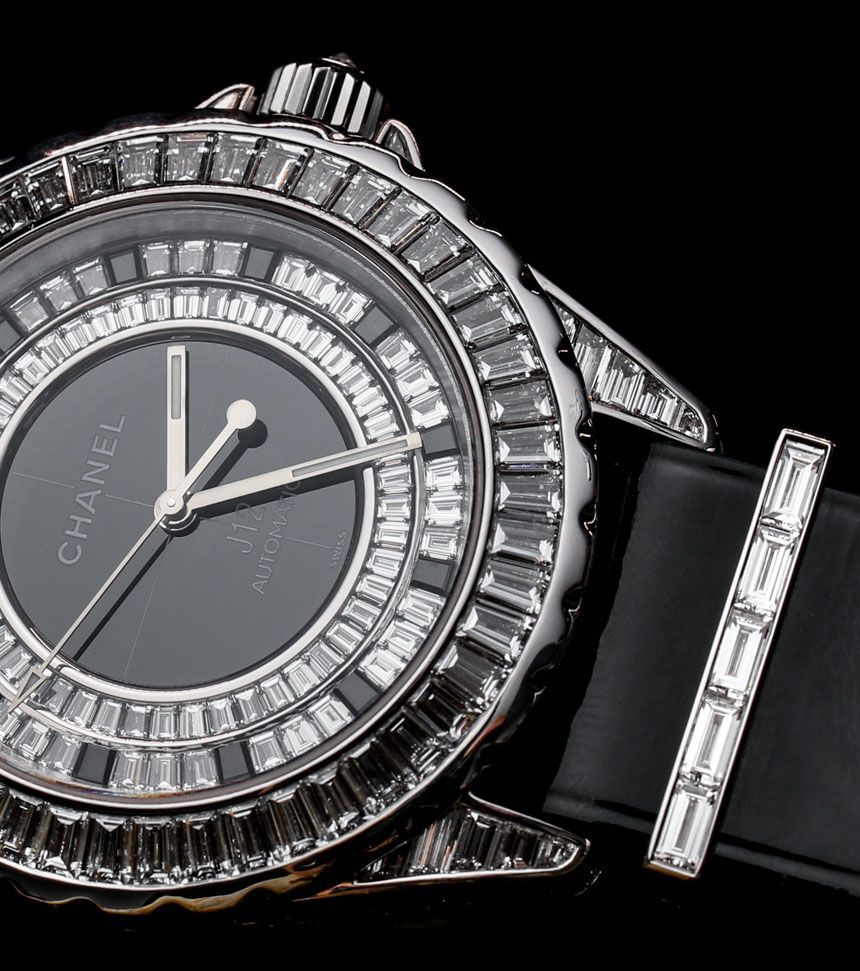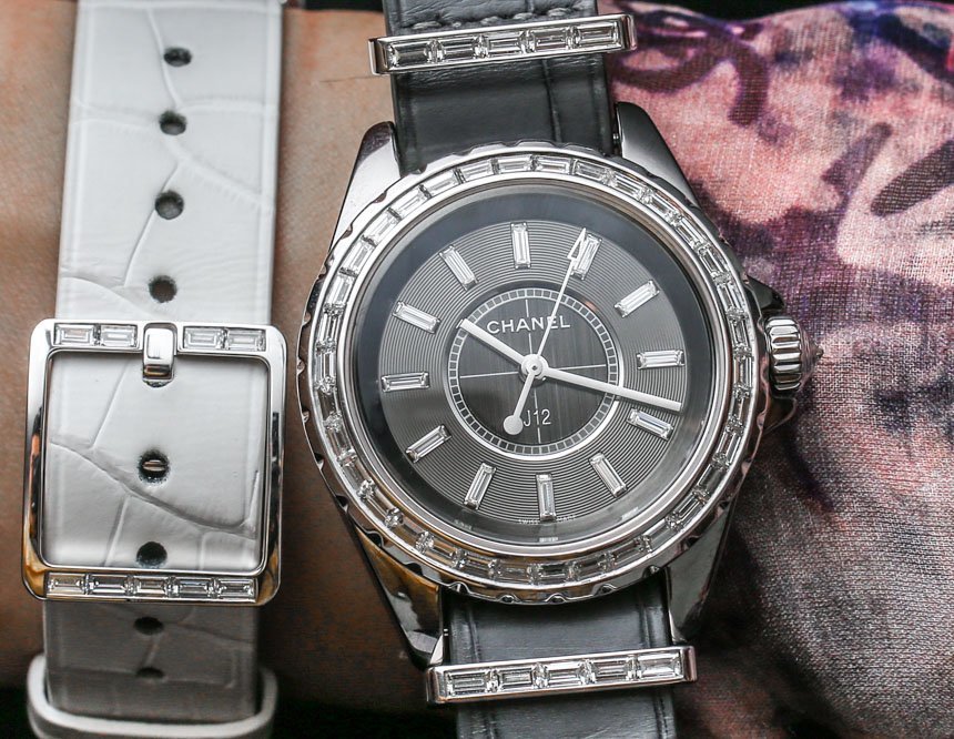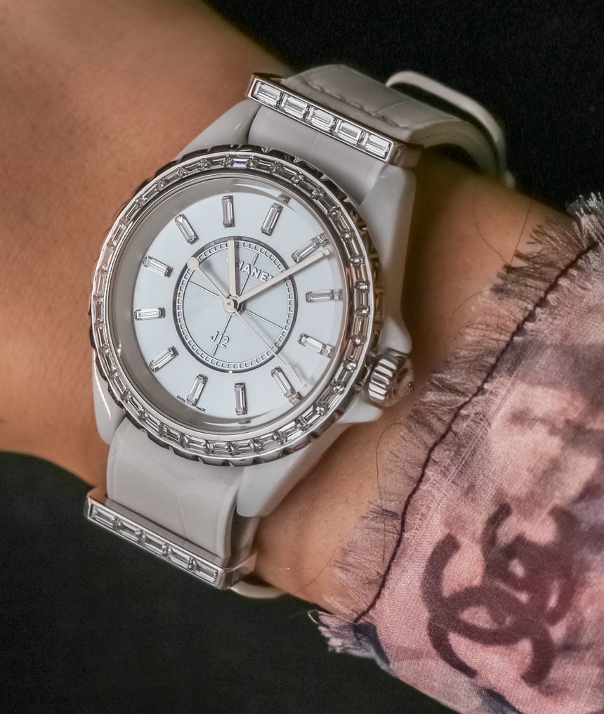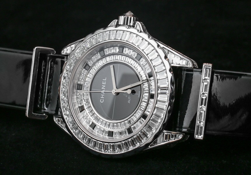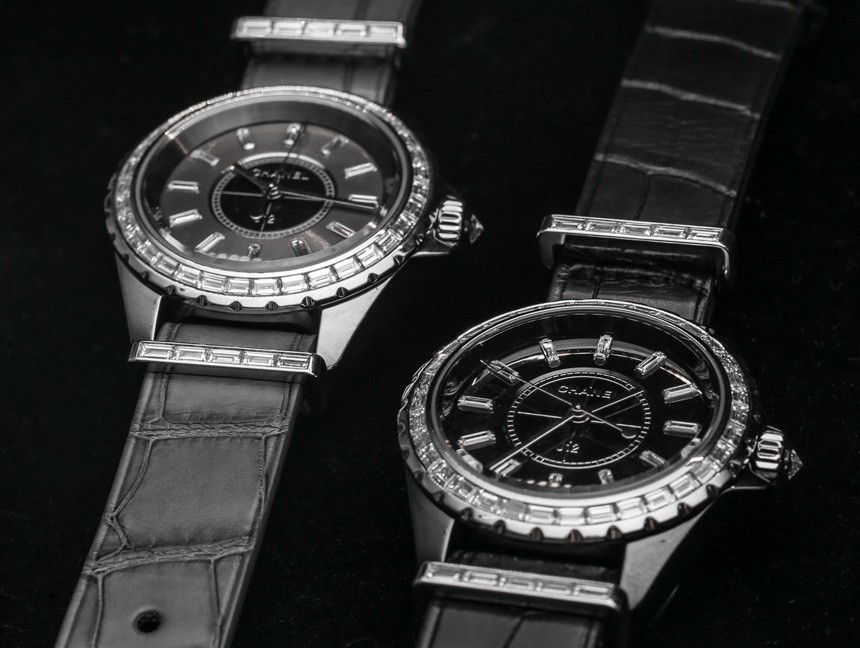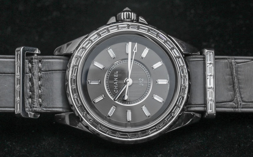 目前,“入門級(jí)”香奈兒 J12 G10 手表將采用明亮式切割鉆石。表殼上的金屬元素是鋼,考慮到鉆石的形狀,它們比克拉更密集的長方形切割寶石便宜。具有諷刺意味的是,明亮式切割的寶石更小,但確實(shí)往往更……明亮,就光澤度而言。帶有長方形切割寶石的 Chanel J12 G10 版本將搭配 18k 白金金屬元素,包括表帶硬件和表圈(以及可能用于表殼的 18k 白金,這在 J12 手表上不是陶瓷的) ).