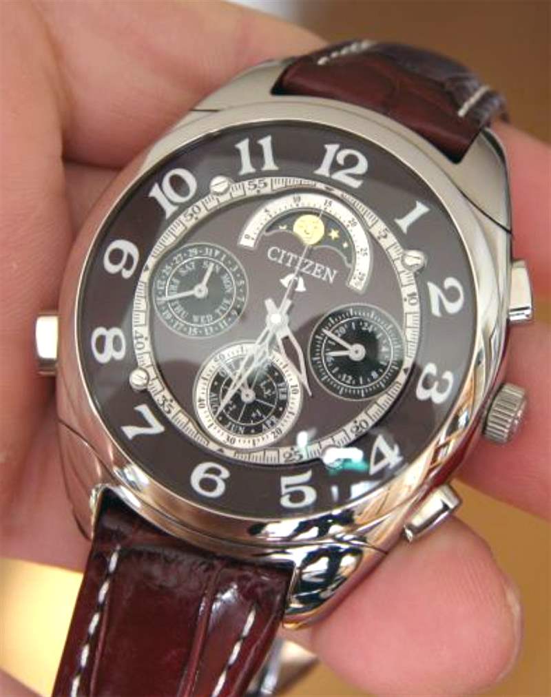對于鐘表愛好者來說,腕表的機芯是第一要務。Citizen Campanola 是一款石英機芯,本質上不是“機械機芯”。大多數投資此類手表的人都需要一塊全機械表,因為人們預感到石英表很便宜。大多數情況下可能是這樣,但西鐵城在這款手表中使用石英機芯是正確的。原因是水平并發癥。一款具備 Citizen Campanola Grand Complication 功能的機械表至少需要 80,000 美元。主要復雜功能的簡要列表是:時間指示、帶閏年的完整萬年歷、12 小時計時碼表、月相指示器和一個報時機制,如果您能閱讀簡單的代碼,它會通過一系列報時聲報時。