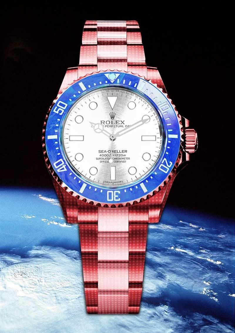 下一個靈感來自天空,即太空。這是對太空旅行成就以及手表如何成為慶祝活動重要組成部分的一種近乎俗氣的看法。Rolex Sea-Dweller 4000 Space 是“為人類邁出一大步的人的手表!” 無論是在太空還是其他地方。這是“沒有。1 星表穿在星星之間!” 它玩弄奢華和星星的概念(因為它們是黃金質(zhì)地的一部分)。