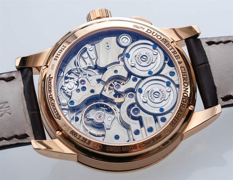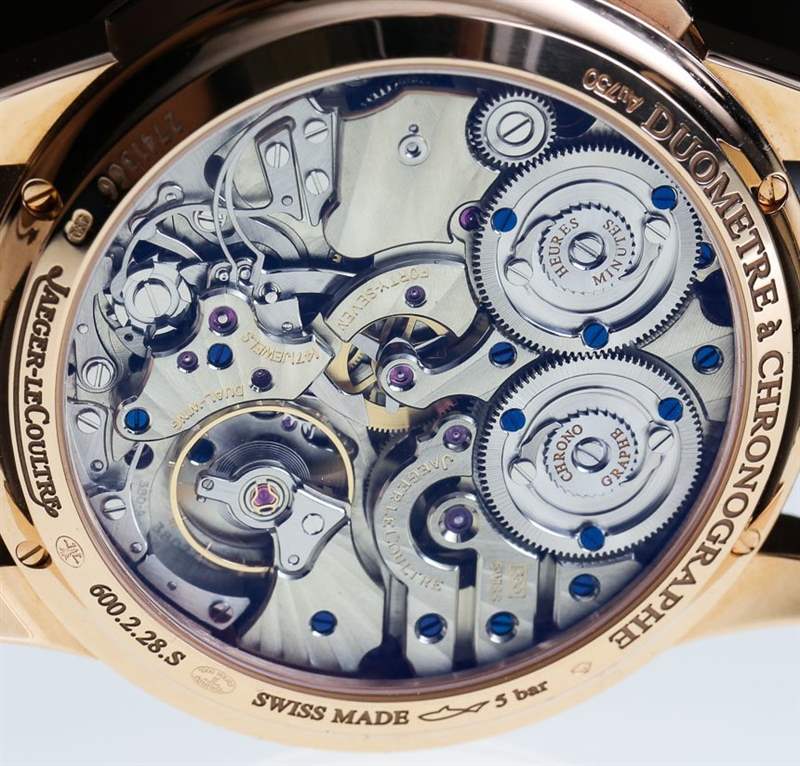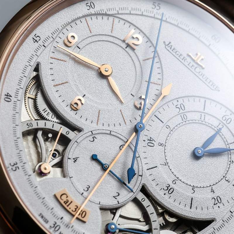 Duometre 腕表機芯系列的另一個重要元素是 Jaeger-LeCoultre 所謂的“雙翼”概念。這是一個有趣的想法,它將用于手表復雜功能的動力與用于指示時間的動力分開。因此,有一個主發條盒直接為機芯的報時部分提供動力,另一個為計時復雜功能提供動力。