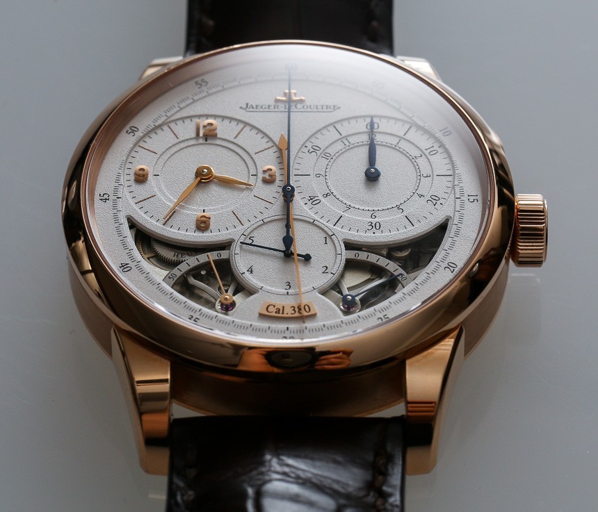 Jaeger-LeCoultre Duomètre à Chronographe 腕表最有趣的功能或許是計時復雜功能。這是一款單按鈕計時碼表,使用 2 點鐘位置的單個按鈕來啟動、停止和重置計時碼表。雖然單按鈕計時碼表有時被認為更優雅,但我實際上更喜歡那些有兩個按鈕的,這樣你就可以用一個按鈕啟動和暫停計時碼表,并用另一個按鈕重置它。