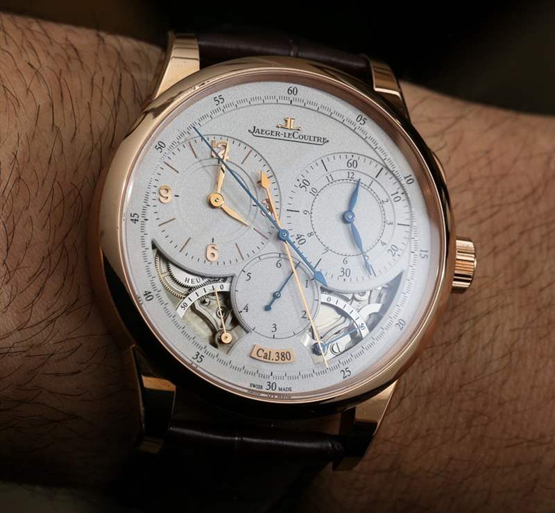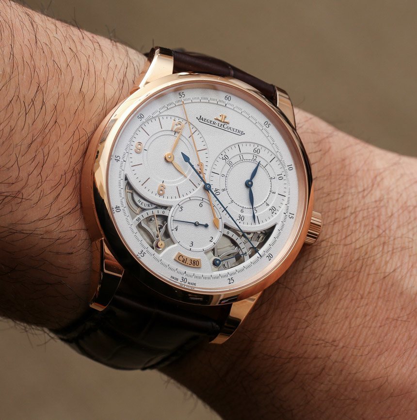 表盤布局很有吸引力,或多或少對稱,時間和計時碼表指示采用不同顏色的指針。我通常不喜歡表面有兩個較大子表盤的手表,但 Duometre 系列是該規則的少數值得注意的例外。雖然表盤比較保守,但 Jaeger-LeCoultre 積家采用優質材料和表面處理打造高度精致且清晰易讀的外觀。它真的是一流品味和鐘表品味的完美結合。