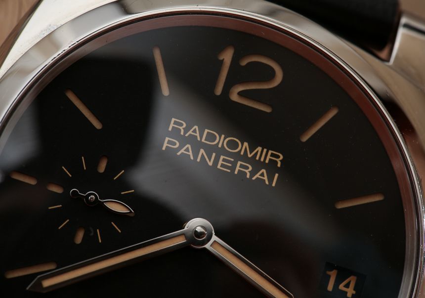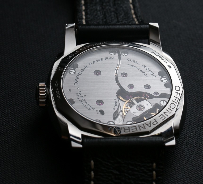 我通常不討論表冠,但在這種情況下我要提一下,因為沛納海做得特別好。擰開表冠,你會發現把柄很粗,摸起來很穩。這很難用語言來解釋,但我只想說我對皇冠感到驚喜。表殼防水深度達 100 米,表盤上方是藍寶石水晶。