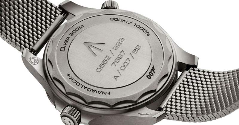 您會(huì)在表殼背面找到特殊的雕刻和銘文,其中包括帶槍的 007 標(biāo)志以及在啞光熱帶棕色鋁制表盤(pán) 6 點(diǎn)鐘位置也可以找到的向上箭頭。這款表背的一大優(yōu)點(diǎn)是它具有 NAIAD 鎖定系統(tǒng),可將表背及其雕刻與手表的方向?qū)R。