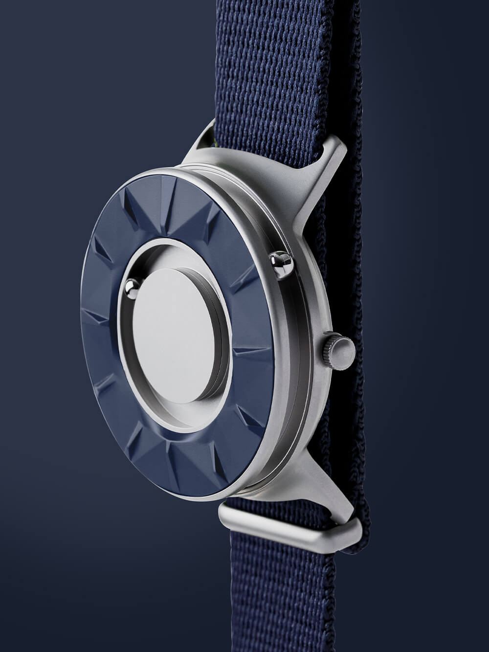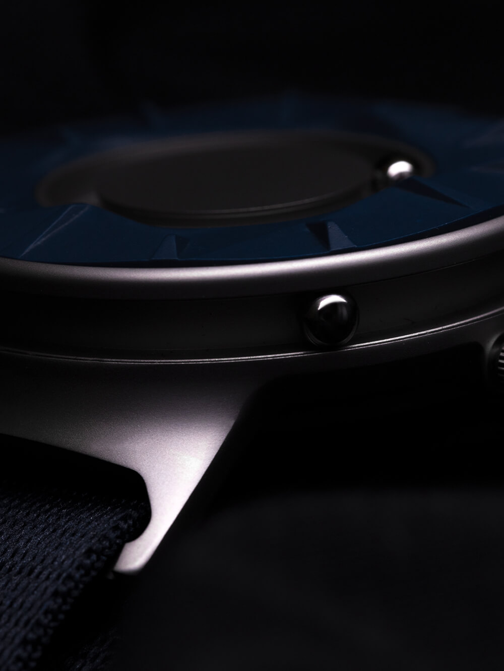 從本質(zhì)上講,Apex 是 Eone 的野外觀察。當(dāng)然,由于獨特的滾珠軸承分鐘和小時指示器,以及表盤周圍的凸起時標(biāo),盲人仍然可以閱讀它。但新表沒有使用 Bradley 上的鉸接式表耳,而是使用堅固的固定表耳。
