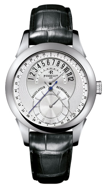 Perrelet的人們?cè)俅螀⑴c其中,跳著復(fù)雜的夾具。這款新的Perrelet調(diào)節(jié)器逆跳手表以一種(據(jù)我所知)以前從未做過的方式混合了一些復(fù)雜功能。您有一個(gè)逆跳小時(shí)顯示,小時(shí)、分鐘和秒之間的調(diào)節(jié)器風(fēng)格分離(占據(jù)主表盤),以及外圍風(fēng)格的日期顯示。元素的平衡非常好。此外,世界上可能有一個(gè)(或兩個(gè))人一直夢(mèng)想著一款將所有這些復(fù)雜功能結(jié)合在一起的手表。