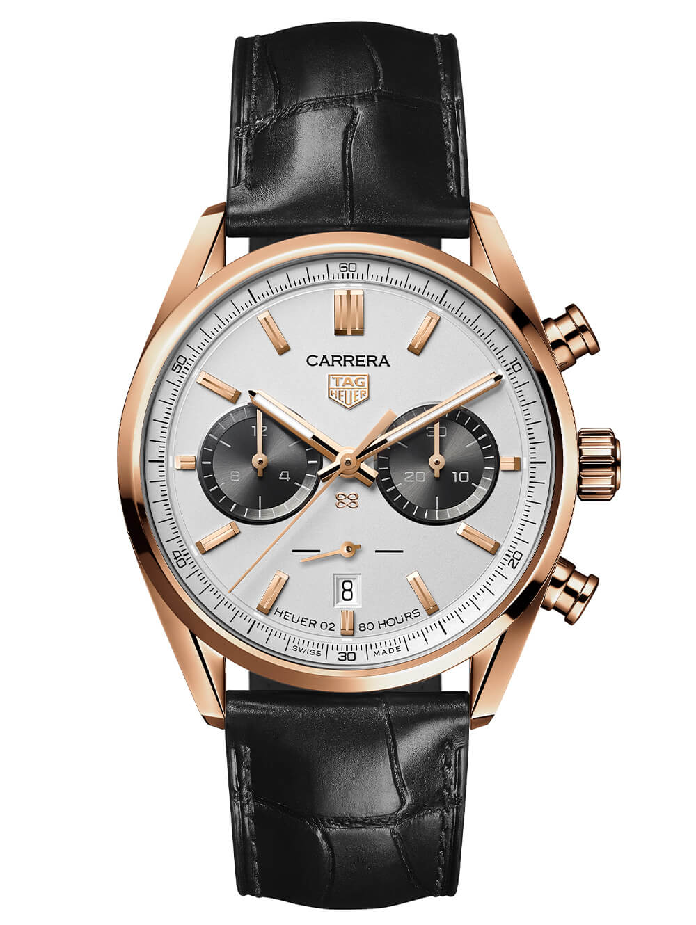 表殼/表盤:直徑 42 毫米,拋光和精細拉絲 18k 玫瑰金防水性: 100 米(10 巴)機芯: Calibre Heuer 02,自動頻率: 28,800 vph (4 Hz)動力儲存: 80小時功能:時、分、小秒針、6 點鐘位置日期顯示、計時表帶:黑色鱷魚皮配 18k 玫瑰金針扣價格/可用性: 15,300 英鎊,限量 188 枚, 19日起可預訂