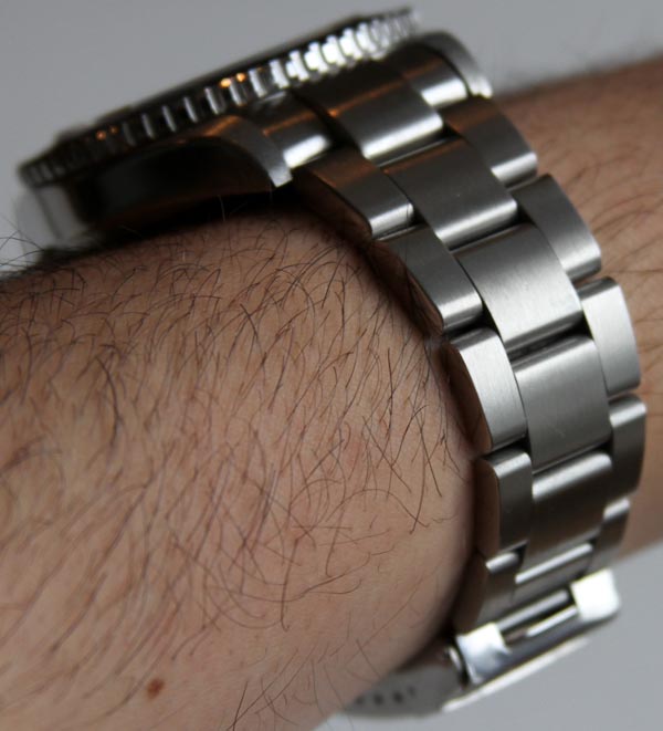 Ril 很好心地包括兩條表帶來完成你的復古幻想。有一個“賽車條紋”北約G10表帶和一個金屬手鐲。北約表帶非常簡單,沒有什么可說的了。手表搭配起來看起來不錯。金屬手鐲還不錯,實際上我喜歡它逐漸變細并使用旋入式鏈節。它還有一個潛水員的擴展(這完全是愚蠢的,因為鑒于低水阻,你不應該用這款手表潛水),有一個雙安全扣,就像幾代前的潛航者一樣。弱點在于部署扣。它使用折疊的,而不是銑削的鋼,這感覺有點小和薄。它上面也有一些太多的銳角。雖然當你戴著手表時 – 這些并不麻煩。