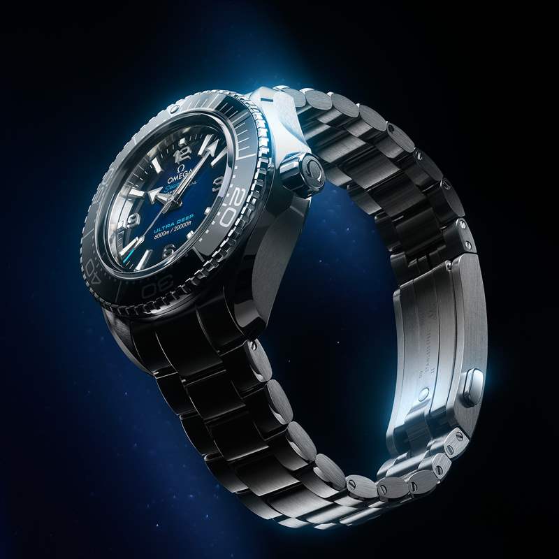 想深入漆黑的海洋深處探索海底的神秘,那么海洋宇宙腕表45.5毫米至臻天文臺(tái) Ultra Deep 款堪稱專業(yè)潛水表的最頂端產(chǎn)品。這款腕表的表殼為45.5毫米,并不顯得很大,佩戴腕上頗為舒適。采用堅(jiān)固耐用的 O-MEGASTEEL 材質(zhì)打造,拋光黑色陶瓷表圈飾有 Liquidmetal 潛水刻度。透過凸起的拱型藍(lán)寶石玻璃表鏡,可以看到亮漆表盤呈現(xiàn)從藍(lán)色到黑色的漸變效果。最讓行家欣喜的是,在產(chǎn)品研發(fā)過程中,歐米茄在真實(shí)的海洋環(huán)境中對(duì)這款腕表進(jìn)行測(cè)試,其防水深度高達(dá)6,000米(20,000英尺),并通過了國(guó)際標(biāo)準(zhǔn)化組織(ISO) 6425:2018有關(guān)飽和潛水表的認(rèn)證,堪稱專業(yè)潛水表之王。