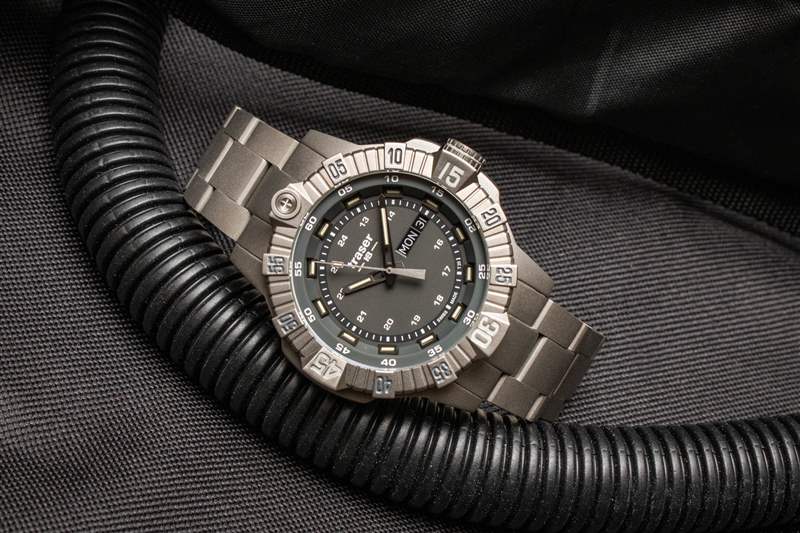 與 Traser 對 P99 Tactical 標準版(其表殼由碳纖維增強聚合物制成)的收費相比,鈦金屬的額外溢價相當合理,配備表帶的型號起價為 740 美元,而 Traser?P99?T Tactical 搭配全鈦金屬手鏈,官方零售價為890 美元。帶有全鈦夜光氚管顯示屏的瑞士制造手表的選擇已經相當有限,如果您想要一款配有配套鈦金屬表鏈的手表,選擇的數量還會進一步減少。在這個價位上,許多精彩的時計也在預算之內,盡管 Traser P99 T Tactical 不一定是針對那些只想要一個像樣的日常計時伴侶的人,而是針對那些專門尋找一個像樣的日常計時伴侶的人。一款大型、堅固且高度實用的工具表的優質執行。