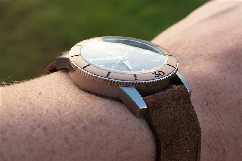 雖然我對許多超級海狼(超級海狼?)產生了短暫的興趣,但這也許是第一個真正引起我共鳴的。我會非常主觀地說它是迄今為止最好的超級海狼。最終,這款手表與標準黑色表盤版本之間的唯一區別是青銅表圈、青銅表冠和絨面革表帶(加上表背上的小樹)。