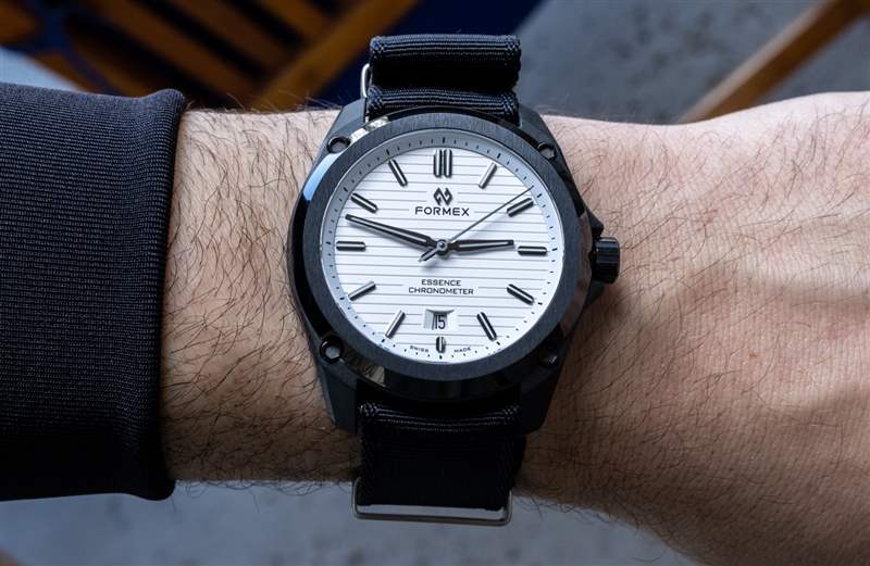 Essence Leggera 手表提供至少三種不同的 22 毫米寬表帶選項(包括橡膠、皮革或新的尼龍 NATO 風格表帶),有五種完全不同的表盤變體。我喜歡 Formex 不僅選擇了不同的顏色,而且除了各種顏色之外,還選擇了不同的飾面和樣式選項。例如,“Cool Grey”表盤是啞光的,而“Electric Blue”則是采用更閃亮的漸變效果?!奥途G”和“北極白”表盤也有水平裝飾線,而鍛造碳(價格略高)只是一塊黑色的鍛造碳材料,具有該材料的標志性紋理。老實說,表盤都很酷,但很難不喜歡白色表盤作為工具表。我想了一個未來的模型,用白色陶瓷表殼(和黑色陶瓷表圈)代替黑色碳纖維表殼來渲染這款手表會很有趣。盡管本文是關于展示 43 毫米寬的型號,但 41 毫米寬的 Essence Leggera 手表將提供相同的表盤選項。