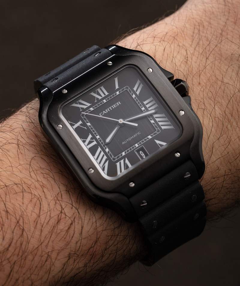 2020 年,卡地亞一直在以新的口味擴展仍然新鮮且非常令人滿意的 Santos 系列。雖然 Santos 計時碼表因其額外的機械復雜性而備受關注,但這款三指針 Santos de Cartier “Large Model” 的“隱形”黑色變體是一款時尚的尤物。沒有多少卡地亞手表可以搭配黑色皮革機車夾克 – 但我們在這里擁有這款可愛的 DLC 涂層精鋼腕表。