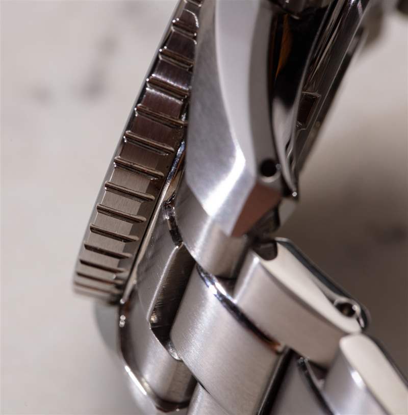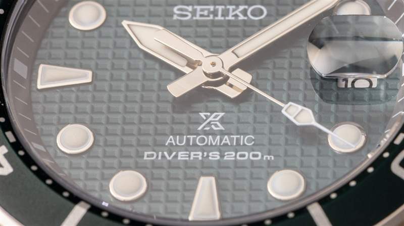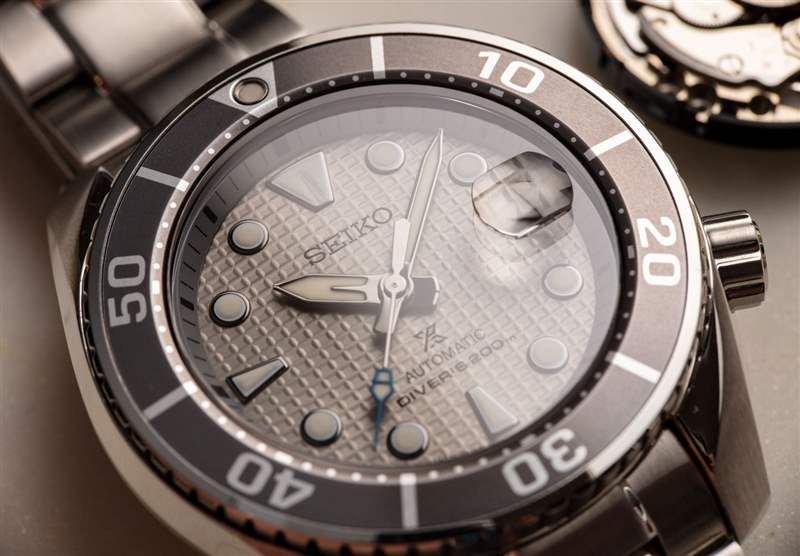除了著名的易讀指針和時標(biāo)外,精工還使用了迷人的紋理表面。確實,這些 Prospex 手表給人一種更高端的感覺,尤其是與精鋼表殼的出色拋光相結(jié)合。然而,單向旋轉(zhuǎn)表圈中的插件是鋁制的,這可能會讓發(fā)燒友喜歡陶瓷表圈插件,就像其他一些精工手表一樣。