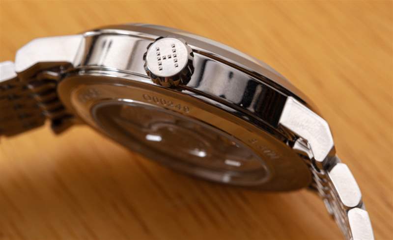 Omnium 表殼尺寸不錯,尺寸合適,比例可以接受,佩戴舒適度很高,但由于某種原因,根據(jù)我的手腕解剖結(jié)構(gòu),當(dāng)我嘗試調(diào)整時,手鐲總是有點太大或太緊手鐲的大小。這不是手表的錯,并且根據(jù)個人的解剖結(jié)構(gòu)有時會發(fā)生。40 毫米寬的表殼厚度約為 12 毫米,具有非常耐磨的 46 毫米表耳到表耳距離。該表殼僅防水 30 米,考慮到品牌在整體展示中的細(xì)節(jié)水平,我預(yù)計至少 50m 甚至 100m。