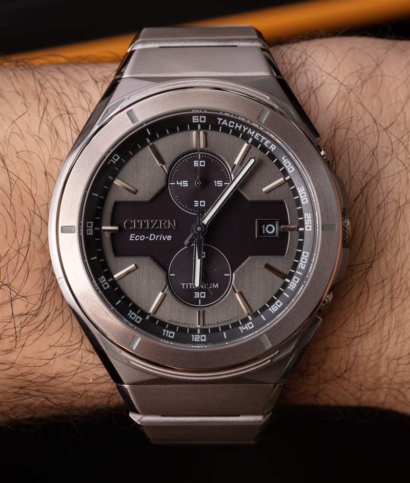 西鐵城不是典型的集成手鐲手表大師,同樣,超級鈦盔甲感覺很新穎。也就是說,該公司在制造與表殼無縫集成的手鐲方面有著悠久的歷史。問題在于,這最終會使手表變得“更長”(表耳到表耳的距離),從而帶來更大的佩戴體驗(對較小的手腕提出了挑戰(zhàn))。我記得我的第一塊西鐵城手表,它也有一種集成式表鏈,盡管它只有 38 毫米寬,但它填滿了我的手腕。Super Titanium Armor 手表的寬度分別約為 40 毫米和 45 毫米,介于三針和計時表款之間。計時碼表的表耳到表耳的距離大約為 56 毫米(三針型號為 53 毫米),因此計時碼表的磨損特別大。