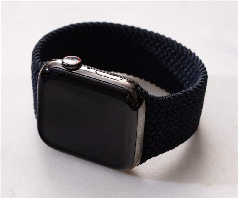 我手腕上的那個是 44 毫米長的鋼制版本,帶有“石墨黑”拋光涂層。它的防水深度為 50 米,屏幕上方有藍寶石水晶,表殼后部的 LED 上方還有額外的藍寶石水晶。盡管擁有更多功能和更亮的屏幕,但電池壽命仍然“全天”。我在 Apple 新的 Braided Solo Loop 表帶上佩戴了 Series 6 鋼,這是 Apple Watch 現在提供的兩種新的“彈力”表帶樣式的一部分。這些讓我回到曾經非常流行的Speidel Twist-O-Flex 肩帶我記得在 1980 年代一直看到。這些帶子不需要在手腕上調整大小或閉合;它們只是展開以適合您的拳頭和手腕。你如何調整它們的大小?你沒有。Apple 為 Solo Loops 表帶出售一長串尺寸(其中超過 10 種),因此您需要提前量好手腕才能獲得一個(或者在可能的情況下在 Apple Store 商店嘗試各種尺寸)。