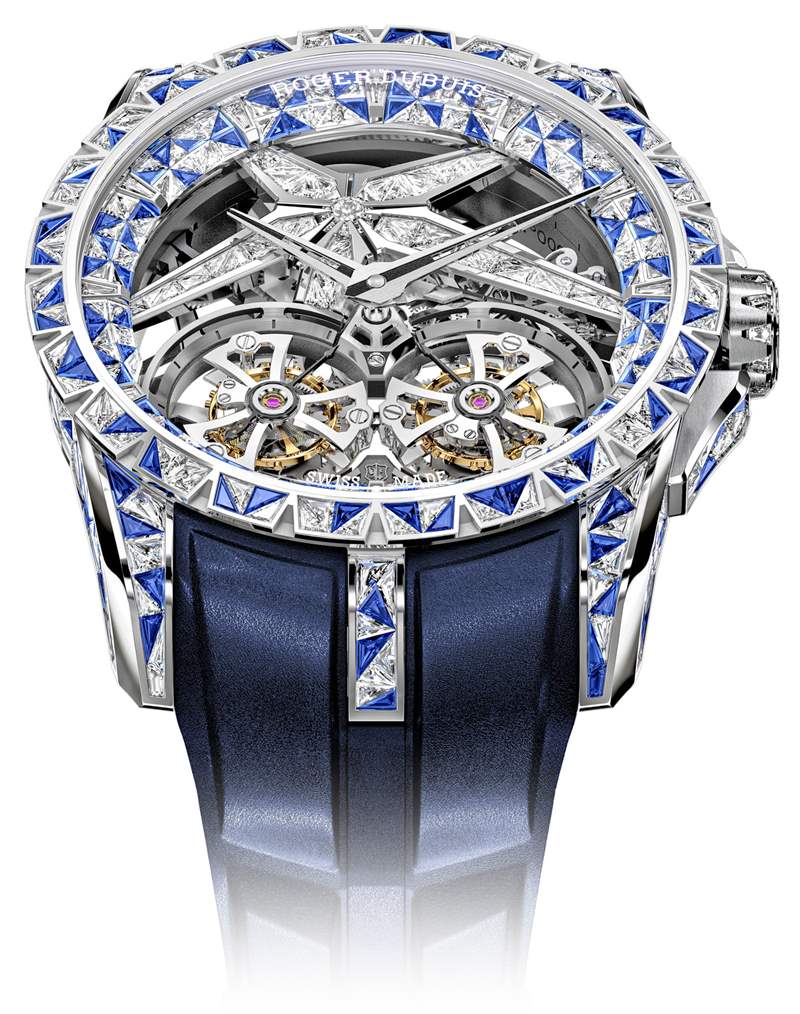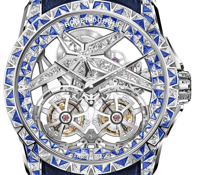 除了制作底層 Excalibur 雙陀飛輪腕表所需的時間外,Roger Dubuis 聲稱額外 900 小時的工作投入到寶石鑲嵌工作中,以使 Excalibur Superbia 具有精湛的外觀,據說靈感來自于Kaz Shirane 的設計作品。手表的最后一個細節是寫在手表上的謹慎的“Memento Mori”信息。粗略地翻譯為“記住,你會死”,Memento Mori 的傳統目的是讓人們意識到要過上充實的生活,否則會后悔錯過的機會。展望未來,羅杰杜彼聲稱其每一件作品都是獨一無二的“超級手表”將在其機芯上刻上 Memento Mori。翻譯成買家,意思是“你死的時候不能帶走它(所以你最好今天花掉它)”。