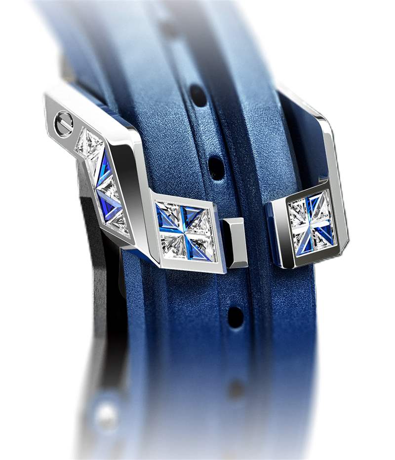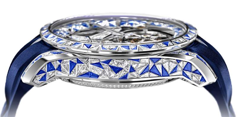 當自豪的瑞士制表師稱他們的行為為“瘋狂”時,我總是覺得很迷人。這意味著他們知道結果有點……有爭議。對他們來說,這樣一款時計的成就與它的社會地位價值或財富吸引力無關。相反,重點是選擇、切割和鑲嵌許多幾何形狀的寶石所需的難以置信的復雜性。不僅如此,除了表殼和表帶之外,手表的表盤和機芯上還鑲嵌了鉆石。廣告訊息廣告信息結束