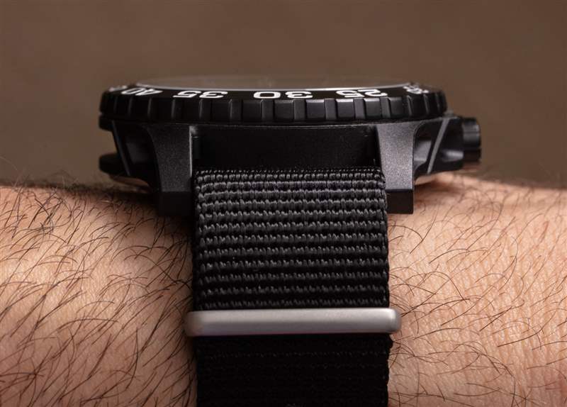 P66 Automatic Pro 45 毫米寬的表殼尺寸肯定會(huì)引起一些收藏家的關(guān)注。我不會(huì)稱它太大,但手表確實(shí)感覺好像它可能是 42 毫米寬并且做所有相同的事情。也就是說,這款手表無緣無故地不是 45 毫米寬。唉,我相信內(nèi)部鋼殼和外部加固聚合物外殼的雙殼結(jié)構(gòu)設(shè)計(jì)是大尺寸的必要原因。表殼厚度也約為 13 毫米,凸耳到凸耳的距離約為 54 毫米。耐磨性如何?相當(dāng)不錯(cuò),其實(shí)。手表仍然主要是鋼制的,所以手腕上感覺不太輕,盡管由于黑色聚合物外殼,手表感覺不像是 45 毫米寬的手表。有幫助的是 P66 Automatic Pro 的定制北約風(fēng)格或橡膠表帶使其佩戴舒適舒適。廣告訊息廣告信息結(jié)束