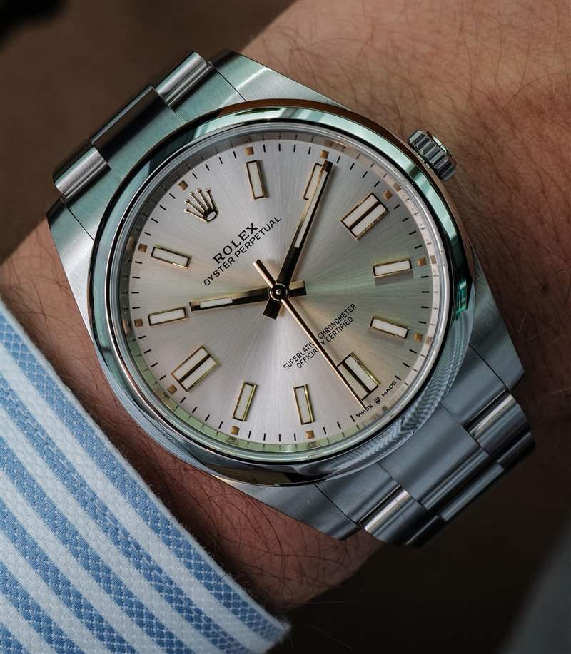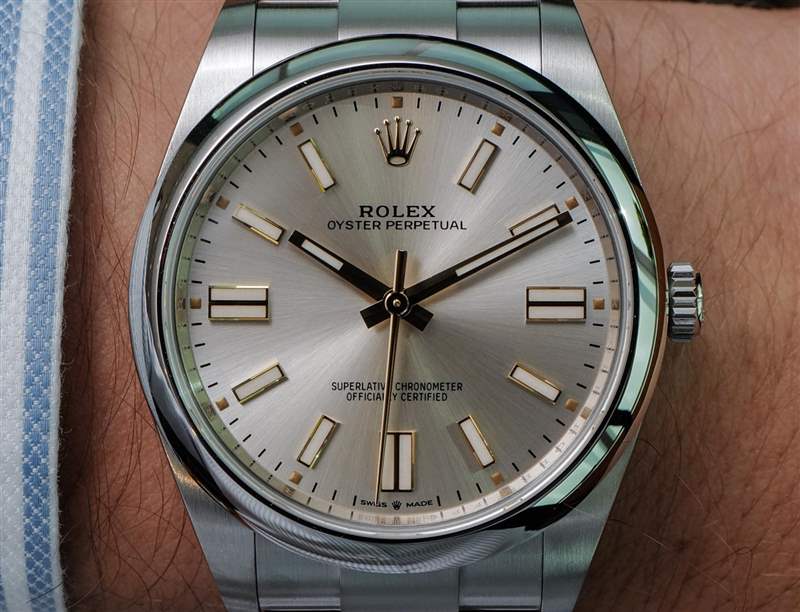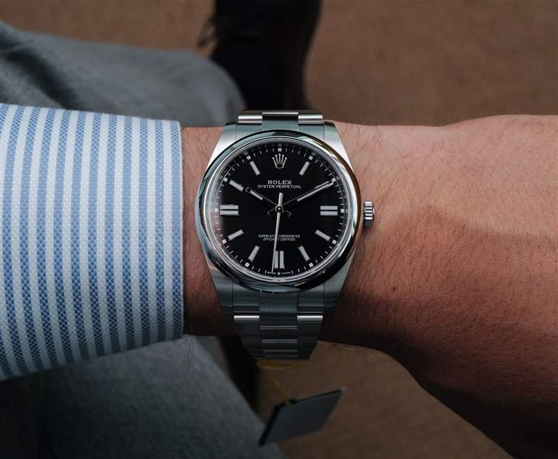 Oyster Perpetual 41 的全拉絲精鋼表殼搭配與之相配的精鋼表鏈,該表鏈采用勞力士的更新設(shè)計(jì),零件之間的公差似乎更低。手鐲確實(shí)有一個(gè)“易于延伸”的表扣,但沒有更昂貴的勞力士 Submariner 型號(hào)中更高級(jí)的 Glidelock 微調(diào)功能。Oyster Perpetual 41 腕表的表殼防水深度達(dá) 100 米。截至 2020 年,勞力士現(xiàn)在生產(chǎn) 31、34、36 和 41 毫米寬尺寸的蠔??式恒動(dòng)腕表。許多手表都有表盤顏色,因此當(dāng)有人選擇要購買的手表時(shí)應(yīng)該小心。