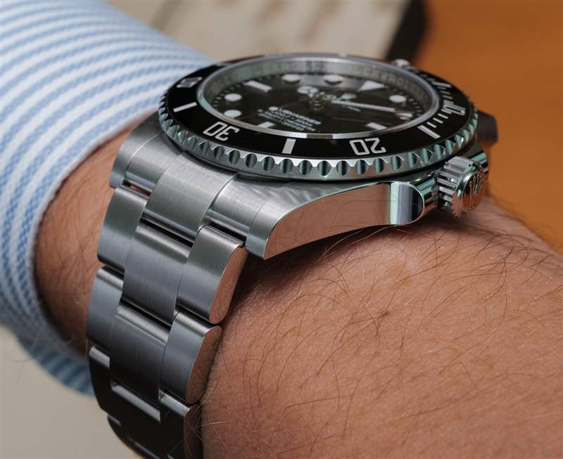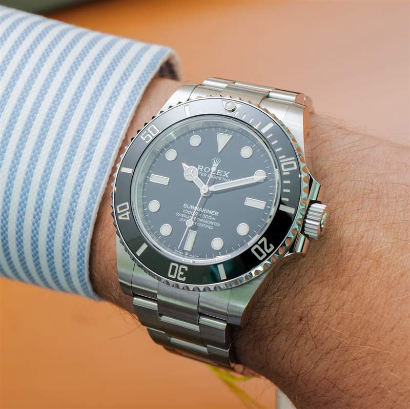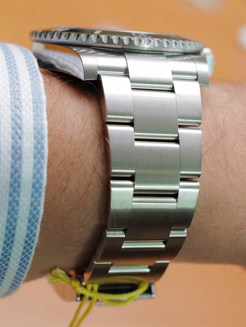 與勞力士 Submariner 手表“頭”一樣漂亮的是手鐲。與 No Date Submariner 的其他產品一樣,該表鏈經過重新設計,盡管它在風格上與之前的三鏈 Oyster 表鏈(市場上最好的金屬表鏈之一)或多或少相同。手鏈仍然具有蠔式折疊安全扣和出色的尺寸微調勞力士 Glidelock 功能。在我看來,更新后的 Submariner 表鏈最大的新聞是鏈節緊密結合在一起 – 使外觀更加“無間隙”,更具高端感,與當前高人氣的“鋼表鏈表”相得益彰。