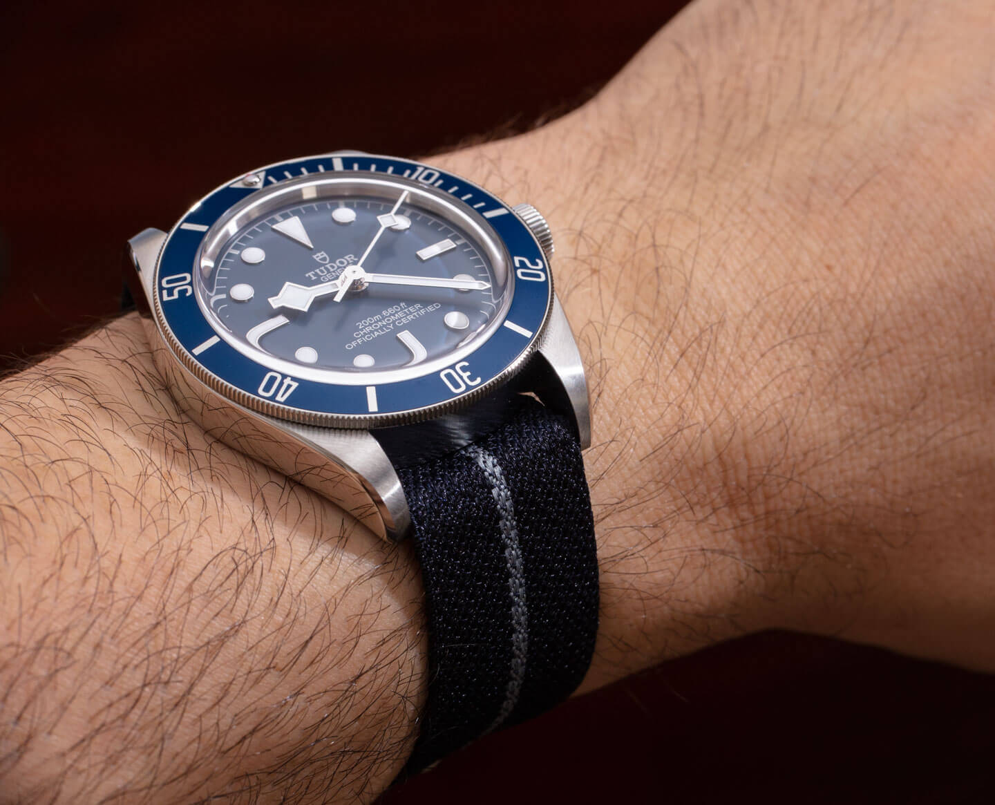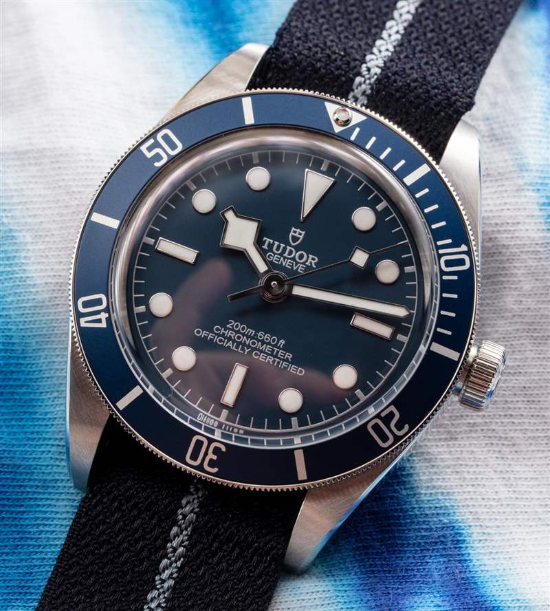 帝舵提供三個(gè)版本的參考 M79030B 碧灣五十八藍(lán),在表帶方面有所不同。參考型號(hào) M79030B-0001 配備了出色的匹配鋼“鉚釘”表鏈,而這款 M79030B-0003 配備了定制的帝舵 NATO 風(fēng)格表帶,該表帶采用藍(lán)色尼龍紡織表帶,帶有優(yōu)質(zhì)帝舵鋼扣和硬件。BB58 參考 M79030B-0002 配備藍(lán)色皮革表帶,價(jià)格與北約式表帶上的 M79030B-0003 相同。