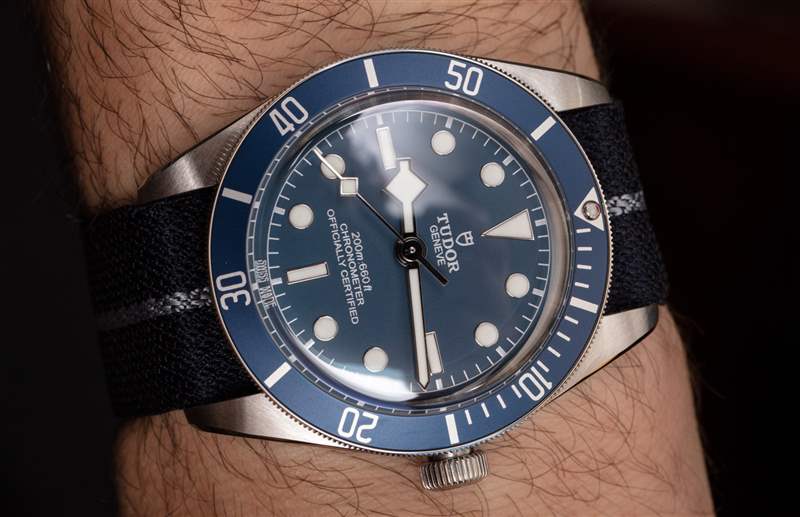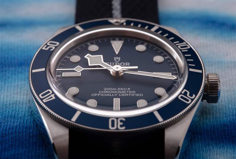 這是一個(gè)只有時(shí)間的表盤(pán),這意味著它提供分鐘、小時(shí)和秒(全部涂有夜光),沒(méi)有日期窗口(這在碧灣手表系列中并不常見(jiàn))。與帶有鏤空日期窗口的手表相比,無(wú)日期手表的表盤(pán)更干凈、對(duì)稱,因此受到許多愛(ài)好者的青睞。否則,表盤(pán)既干凈又實(shí)用,盡管我認(rèn)為很多人都同意,如果沒(méi)有表盤(pán)上“Chronometer”標(biāo)簽下的“Officially Certified”文字聲明,帝舵就可以做到。任何標(biāo)有天文臺(tái)表的手表都必須經(jīng)過(guò)官方認(rèn)證,因此該聲明是不必要的多余。是的,這也是勞力士在其表盤(pán)上放置的東西——但這些是其他手表,通常被手表愛(ài)好者看不起,因?yàn)樗鼈冇小斑^(guò)多的表盤(pán)文字”。話說(shuō)回來(lái),
