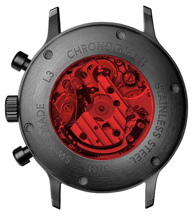 L3 計時碼表的有趣之處之一是莫里斯·德·莫里亞克 (Maurice de Mauriac) 特意讓它手動上鏈。它所基于的機芯由 Swiss Concepto 生產,并使用(或多或少)Valjoux 7750 架構。然后它移除自動上鏈機構,將手表變成手動上鏈機械機芯。市場上確實沒有其他容易買到的手動上鏈計時機芯,所以莫里斯·德·莫里亞克(Maurice de Mauriac)采用這種方法是有道理的。為什么需要手動上弦?嗯,可能是因為 Speedmaster Professional Moonwatch 也是。它還有助于使外殼更薄——從設計的角度來看,這并不是一個微不足道的好處。