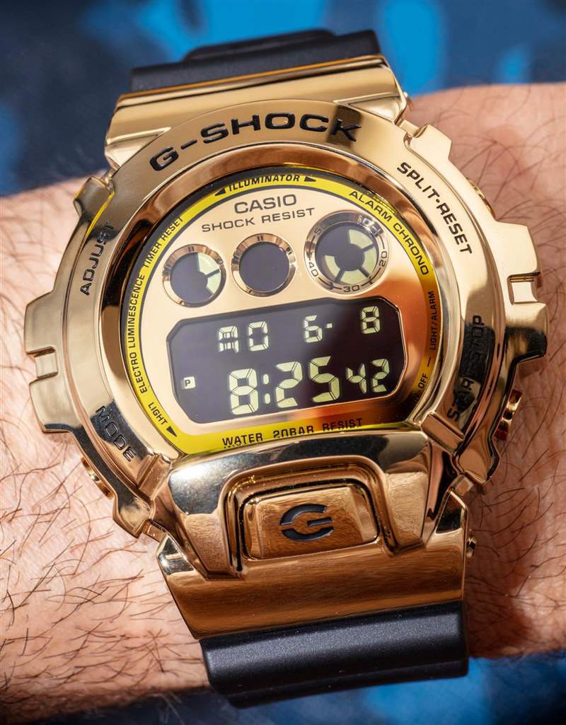 日本的卡西歐很快了解到 G-Shock 的粉絲也喜歡金屬——一旦它開始生產更多著名的拋光和涂層合金“樹脂”手表。直到最近,金屬 G-shock 手表(金屬外殼而不是內部結構)比許多塑料型號貴得多,但隨著卡西歐的充實,金屬 G-Shock 手表的價格已經下降了很多越來越多的選擇。這款參考 GM6900G-9(較大的 GM-6900 時計系列的一部分)僅售 200 多美元,采用標志性的 DW-6900 表殼,并采用黃金色調的離子鍍鋼制成。GM-9600 系列的其他當前型號包括天然拋光鋼和無煙煤色調。我完全期待卡西歐在未來提供更多口味。