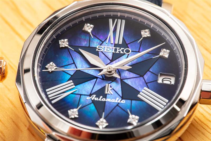 精工在 SPB1XX Lukia 手表的表盤上做得很漂亮,這些表盤都是珍珠母的。底座上印有珍珠母貝表盤,賦予表盤復雜藝術鑲嵌的外觀(其幾何形狀以及鑲鉆時標),這就是我之前所說的與表殼設計相協調的東西。看看印刷(和彩色)珍珠母 Lukia 手表在紅色、白色、藍色、金色和粉紅色中的外觀是非常有趣的。在我看來,他們看起來很有吸引力。