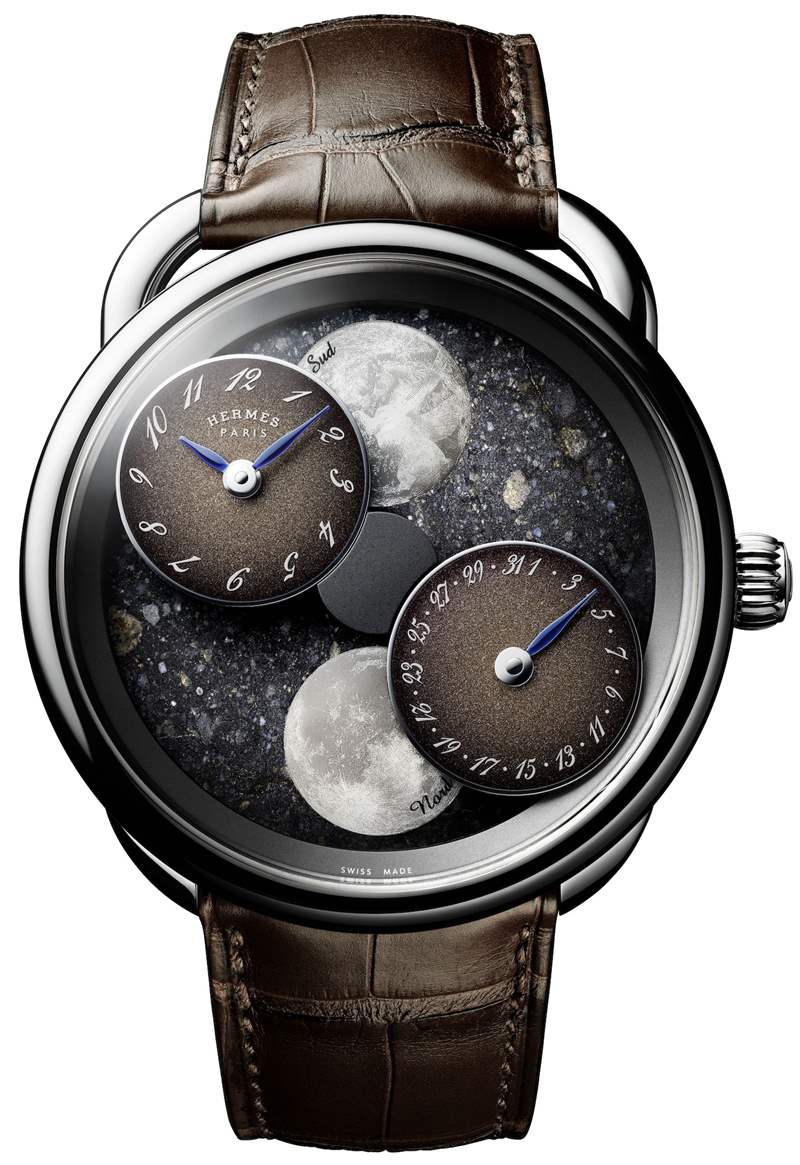 去年,Herm?s 推出了 18k 白金砂金石和 L’heure de la Lune 的 18k 白金隕石表盤版本,而 2020 年推出了三種新型隕石和青金石——價格不同,具體取決于稀有。同樣,即使這些都是太空巖石表盤,它們也來自墜落地球的隕石。新的隕石款式是帶有灰色圖案的“撒哈拉隕石”,18k 白金,棕色和藍色月球隕石表盤(同樣配備 18k 白金表殼),以及帶有 950 鉑金表殼的綠色主題火星隕石表盤。廣告訊息廣告信息結束