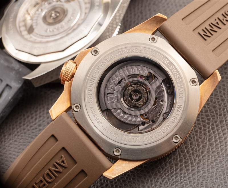 安德斯曼使用青銅、鈦和藍寶石水晶作為主要表殼組件的混合物。底蓋是鈦(帶有藍寶石水晶窗),主表殼是銅和錫混合的青銅 CuSn8 合金混合物,安德斯曼說這是一種相當耐腐蝕的金屬形式。青銅并不是所有鐘表愛好者都選擇的手表材料,但大多數鐘表愛好者應該在他們的收藏中至少擁有一款青銅鐘表,看看有什么大驚小怪的。青銅首先受益于它的顏色,它“似金”,明顯比鋼更暖色調。隨著金屬氧化,青銅也會隨著時間的推移而改變顏色。對于某些人來說,這是悲慘的,對他們來說,鋼、金或其他更穩定的材料將成為更好的表殼材料。然而,青銅粉絲,