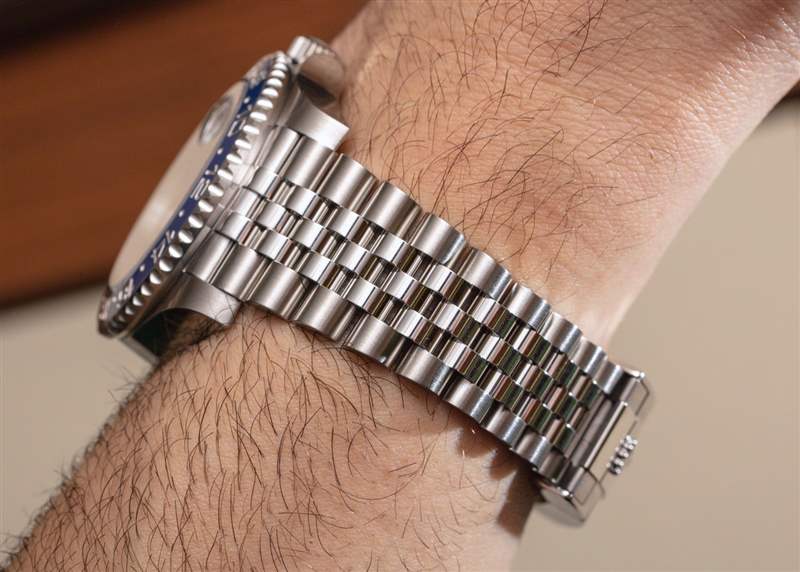 手表愛好者有時會對哪種手鐲更好或更受歡迎感到興奮,我的看法是它們都有自己的優點。有些人聲稱 Jubilee 手鐲感覺有點“老舊”,但這僅僅是因為它主要與更多老式勞力士時計相關,因為他們最近沒有將手鐲用于運動手表。Jubilee 風格的手鏈非常舒適,它采用相同的展開式表扣(帶有與三鏈手鏈上的“舒適延長線”)。對我來說,這兩個手鏈只是兩種不同的風格,都與 GMT 相匹配- Master II 手表同樣出色。