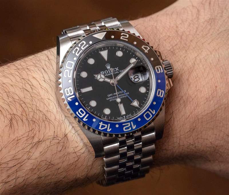 新的 126710 代勞力士 GMT-Master II 在幾個方面比上一代 116710 進行了升級。一個本質上不是升級而僅僅是外觀差異的功能是選擇匹配的鋼表鏈。對許多人來說,這將是勞力士蝙蝠俠和“蝙蝠女”(我覺得不太合適的昵稱)之間最大的區別。上一代 BLNR(勞力士用來指代表圈樣式的代碼)搭配三鏈式勞力士蠔式表鏈(帶拋光中心鏈節),新一代 BLNR 搭配全鋼 Jubilee 表鏈。廣告訊息廣告信息結束