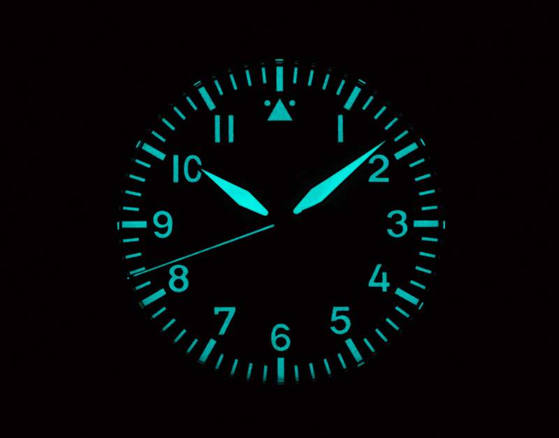 日輝紋飾面表盤上飾有白色夜光漆指針,帶有夜光漆小時數字,易讀性極佳。表盤上的扁平藍寶石水晶在不產生眩光方面做得很好,這進一步增強了已經很好的表盤可讀性。