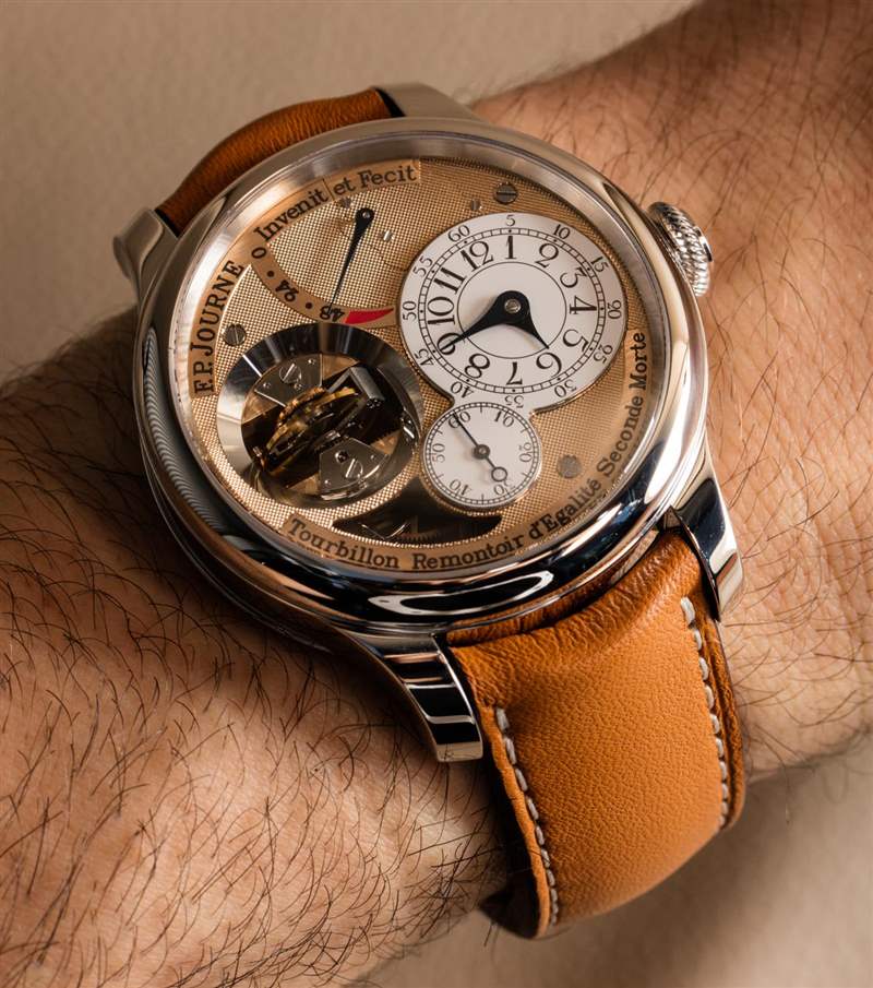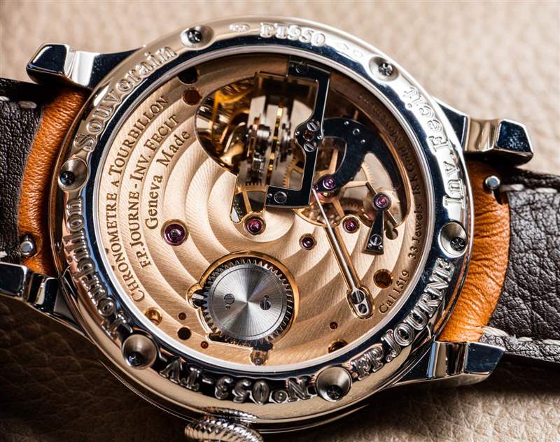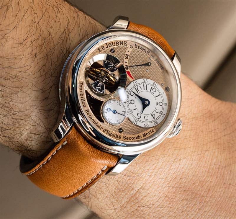 表殼、表盤和機芯的拋光和裝飾通常是一流的,整體上也是一流的。FP Journe 進一步確保其所有手表都舒適且適合日常佩戴。這里也不例外。即使是蜜棕色的小牛皮表帶,也與表盤和表殼的其他色調完美搭配,十分時尚。