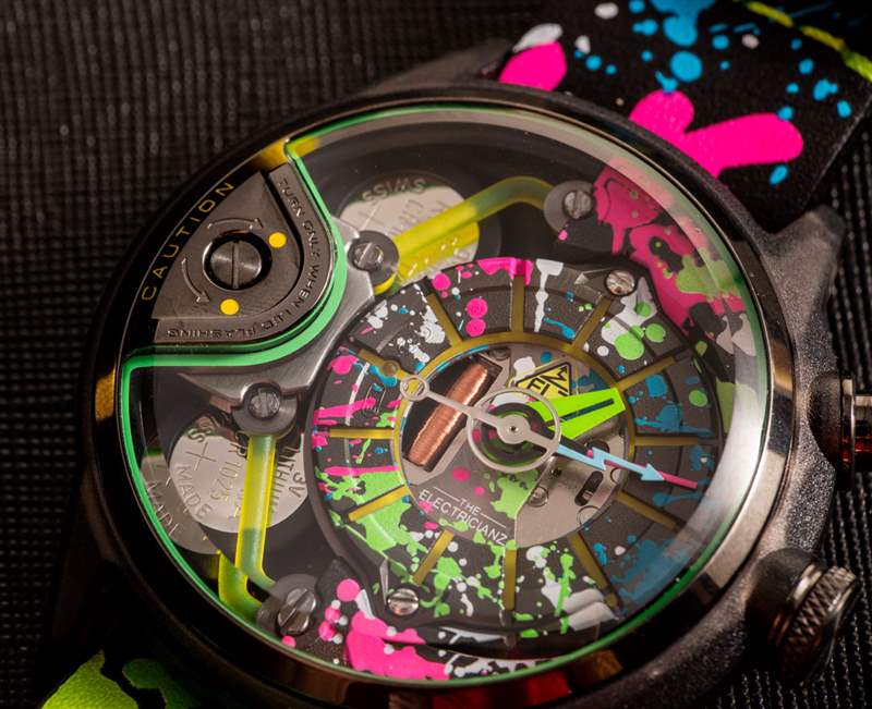 表盤本身也是一個問題,因為,雖然它看起來很酷,但 ELECTRICIANZ 似乎并沒有為易讀性而努力。這是一種恥辱,因為設計師知道如何去做,但似乎在這個項目中強調了其他優先事項。我真的很喜歡指針的設計,理論上,這個表盤應該很棒。ELECTRICIANZ 沒有花足夠的時間在噴漆的表盤上制作不同版本和尺寸的指針,以獲得足夠高的易讀性以滿足我的口味。有了更多的研發,這個表盤可能真的很棒。也許他們會再試一次。