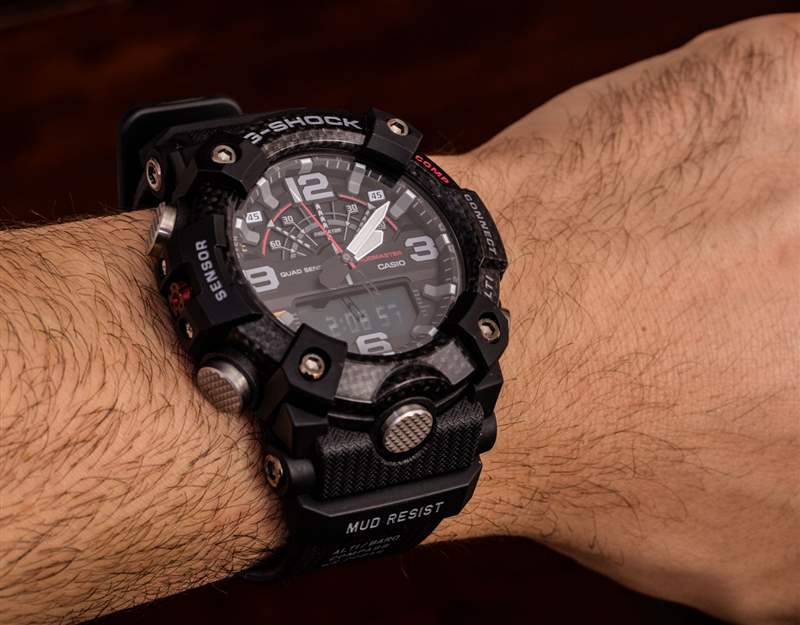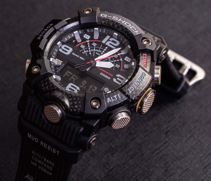當您將 Mudmaster GG-B100 握在手中時,您會立即想開始使用它。這可能與表殼周圍的六個大型滾花表面推動器有關。Mudmaster 系列是關于水/灰塵/泥漿保護的,所有推桿的設計都考慮到了這一點。我真的很喜歡在機箱上有更多而不是更少的推動器,因為這意味著您通常可以更快地獲得功能。請注意,您可以將“已連接”的 G-Shock 手表連接到您的手機,如果您不想玩箱推芭蕾,您可以使用 G-Shock 應用程序調整手表上的設置。廣告訊息廣告信息結束