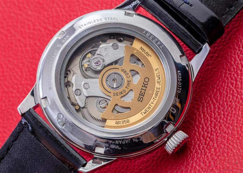 精工(連同東方和西鐵城)向世界證明,您不需要為一款體面但簡單的機械表收取 1,000 美元或更多的費用。雖然大多數普通日本制造的機械機芯不如瑞士機芯漂亮,但它們通常以更具競爭力的價格提供相同或更好的性能。透過展覽底蓋窗口,您可以看到內部時間+日期精工 Calibre 4R35 自動機芯。這不是它最昂貴的票價,但它看起來不錯,運行頻率為 3Hz,動力儲存約 41 小時。在這個價格范圍內,精工正裝手表不是最好的機芯,而是一款具有真正個性的有趣機芯。廣告訊息廣告信息結束